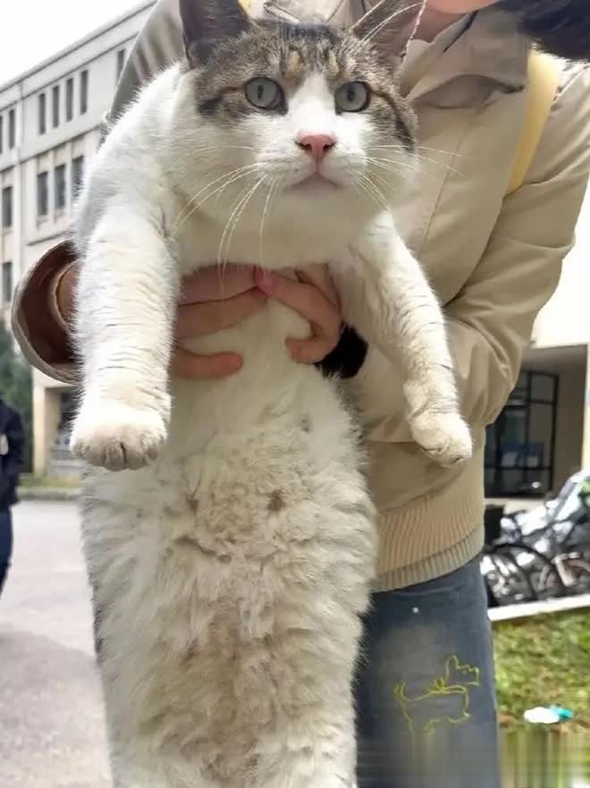 还有被猫咪“选中”的同学幽默地说:“它在校园里找到了我这个失散多年的奴才,现在在家可神气了,每天都不拿正眼看我。”
