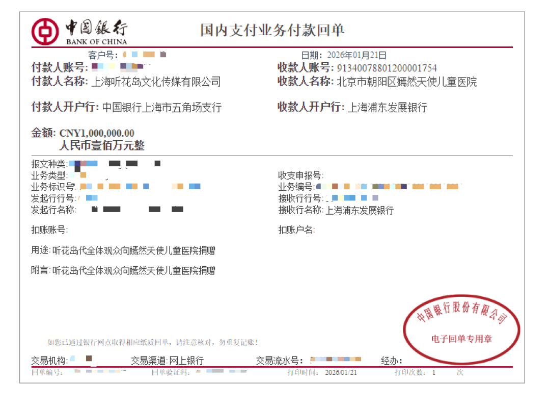 此次捐赠源于对唇腭裂儿童困境的持续关注,以及对嫣然天使儿童医院公益救助成果的认可。听花岛方面表示,善款的价值不仅在于给予,更在于精准“落点”,后续将持续关注善款用途,确保每一分钱都用于最需要帮助的孩子。