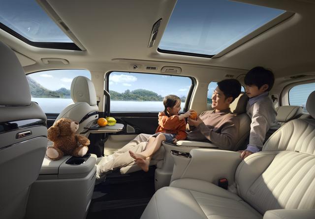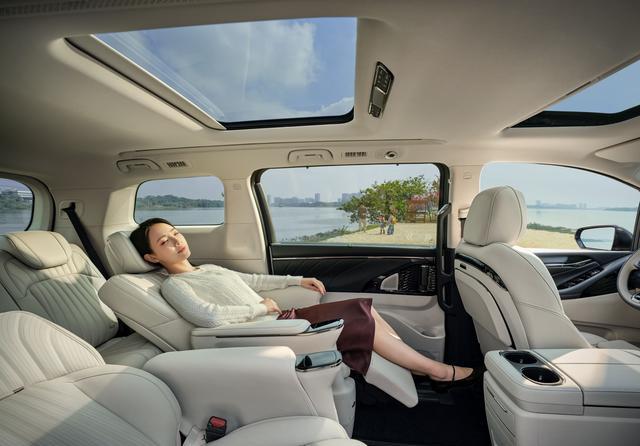 最让家人满意的,是二排的头等舱座椅。宽大的坐垫、可调的靠背和腿托,再加上细腻的皮质包裹,老人和孩子坐长途车再也不会喊累。360度环抱式安全气囊矩阵,更是给全家人的出行加了一道坚实的防护。